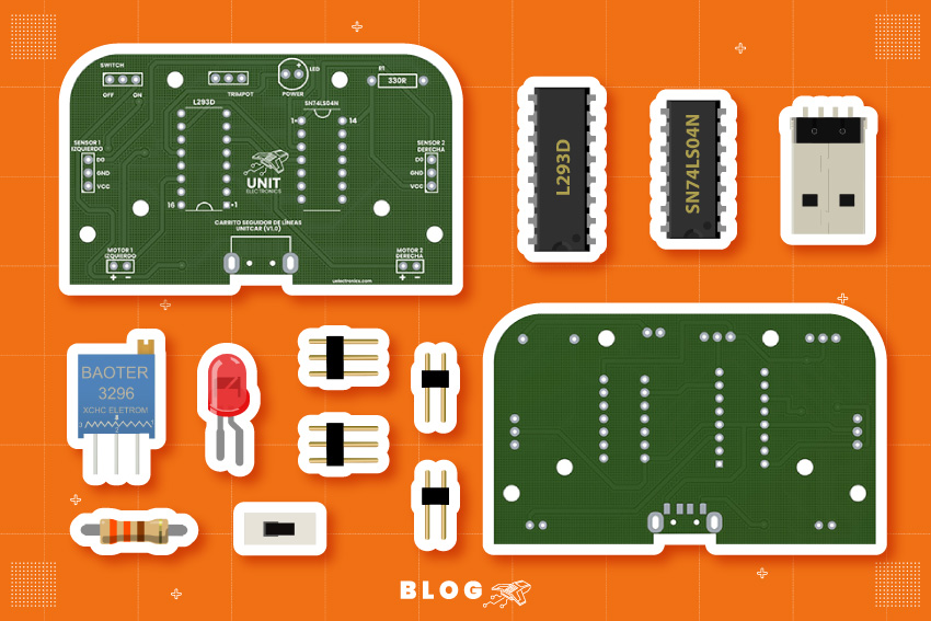 UNIT CAR incluye una placa PCB para que el carrito funcione, la placa tiene pocos componentes y viene desoldada para que tu mismo puedas soldar la placa y practiques tus habilidades, así como potencializar tu destreza a la hora de soldar.