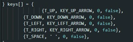 {T_RIGHT, KEY_RIGHT_ARROW, 0, false},