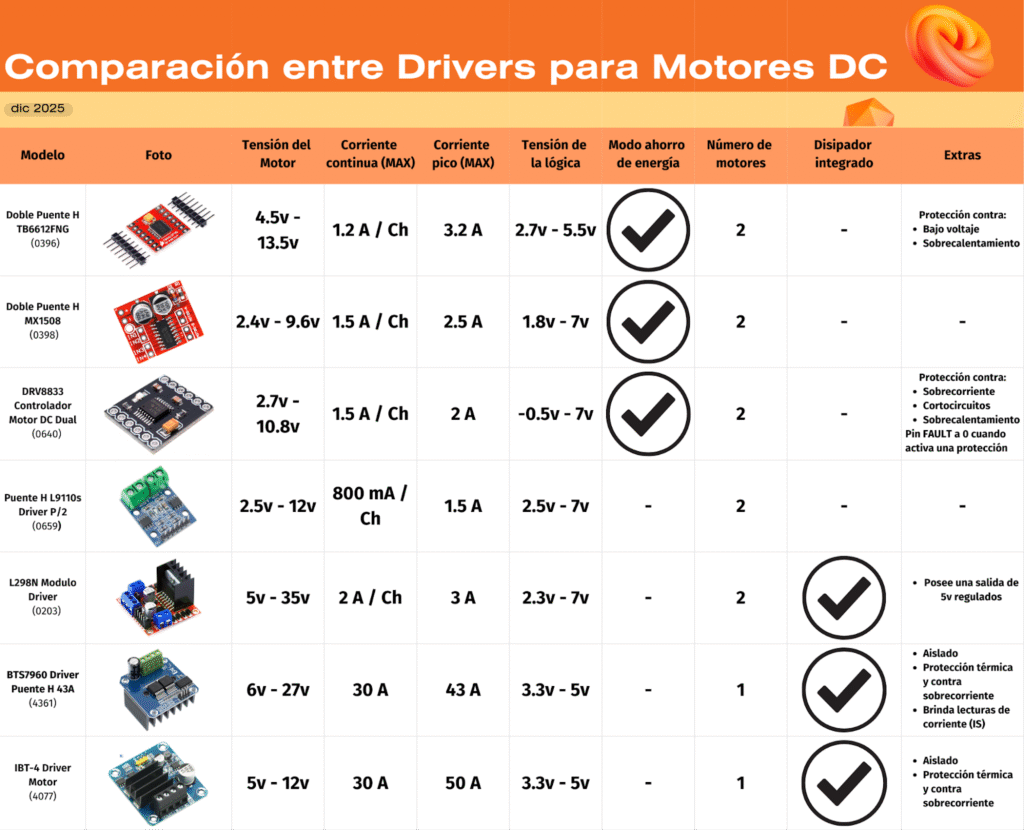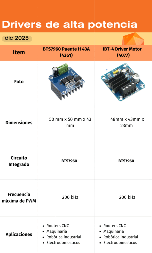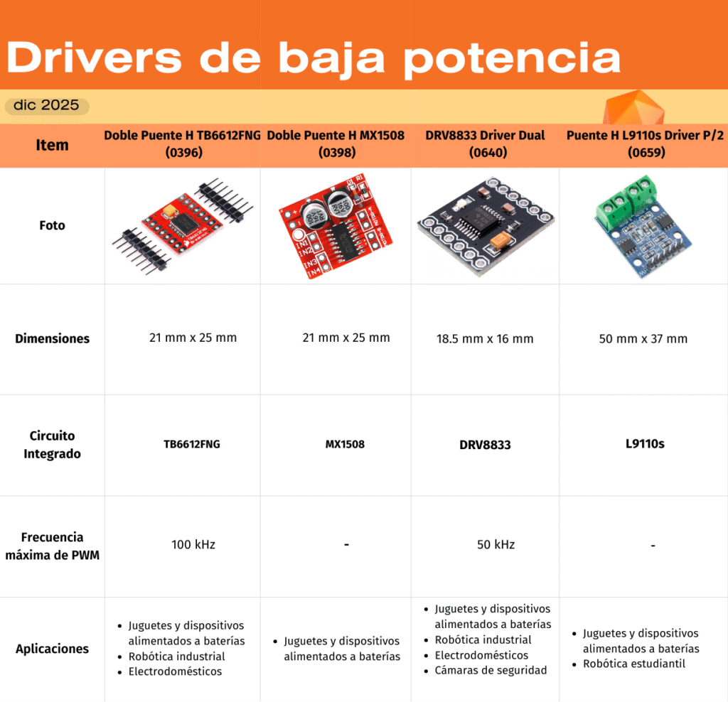 De los drivers presentes en el catálogo de UNIT Electronics a la fecha de la publicación de esta entrada se presenta la siguiente tabla: