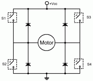 Para ello se utiliza un circuito conocido como “Puente H” debido a la similitud que guarda dicha topología con esta letra del alfabeto.