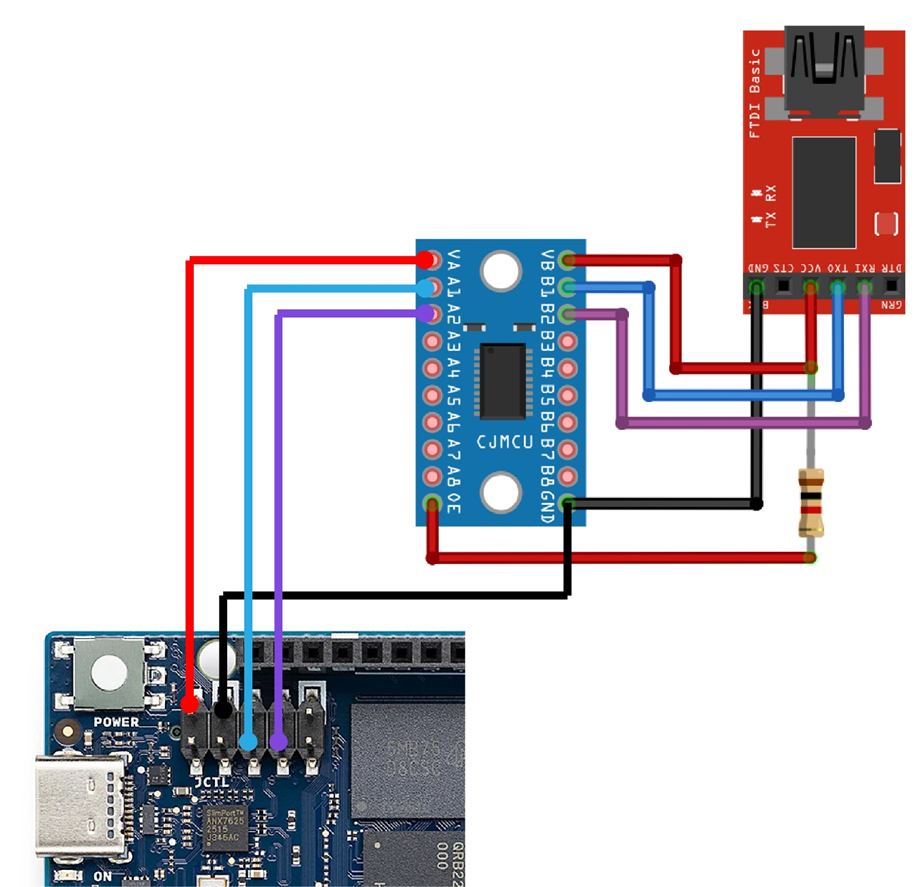 Esta interfaz está disponible a través del conector JCTL en el UNO Q. Para conectarlo sigue el diagrama de conexión, recuerda esta interfaz funciona a niveles lógicos de 1.8 V y debe utilizarse con un convertidor USB a TTL compatible para evitar daños en el hardware.