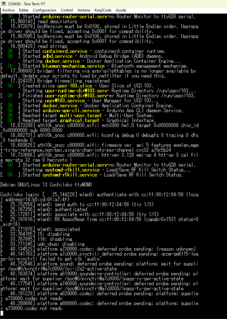 Una vez hecho está configuración tendremos la terminal lista, después se tendrá que reiniciar la UNO Q, para que cargue el sistema de nuevo:
