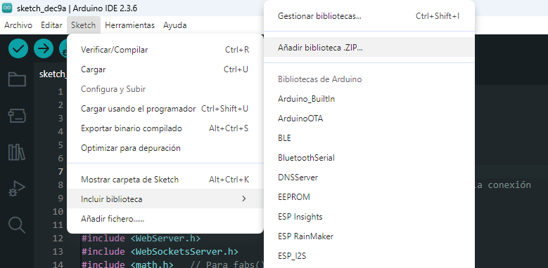 - Instalar la librería WebSockets