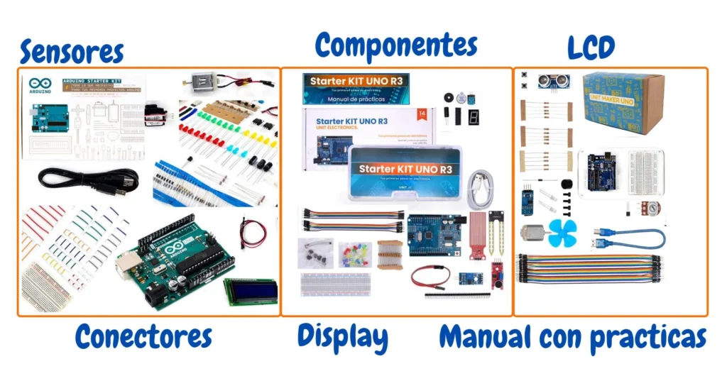 Los siguientes kits de basados en Arduino se sugieren debido a que es una plataforma fundamental para aprender electrónica y programación de forma práctica, permitiendo crear desde proyectos básicos hasta sistemas complejos de automatización.